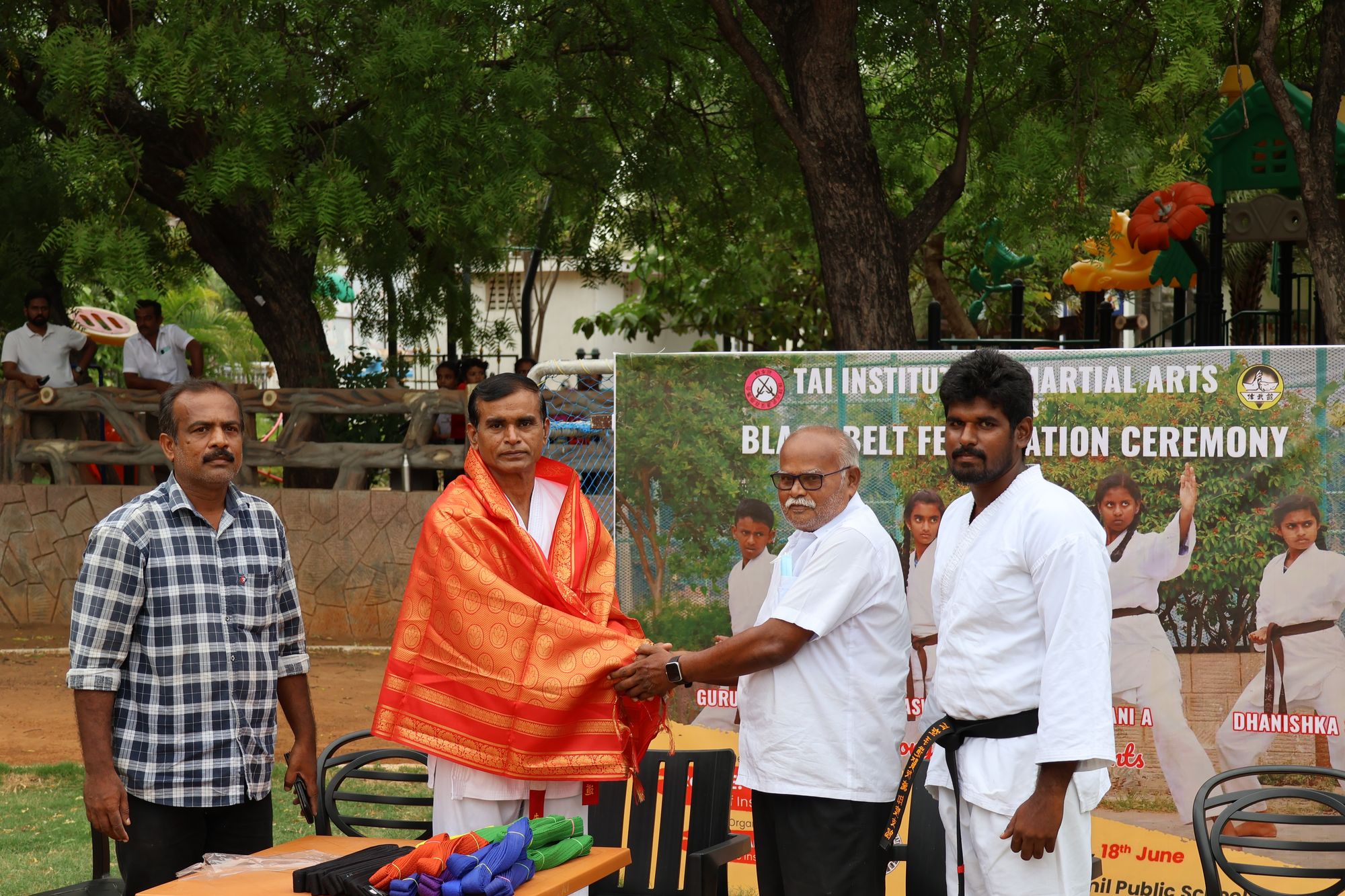 It is with great Pride and immense Joy we share the good news about the achievement of four students, Janani from Grade X, Saraswathi, Dhanishka & Guru Vinush from Grade VIII of Muthamil Public School. They were awarded the black belt in karate on 18th June 2023 by Renshi Venkat, Chief Coach, Tai Institute Of Martial Arts. A special note of thanks goes to Mr. kandasamy, Karate & Silambam Master, Muthamil Public School, the man behind this resounding success..