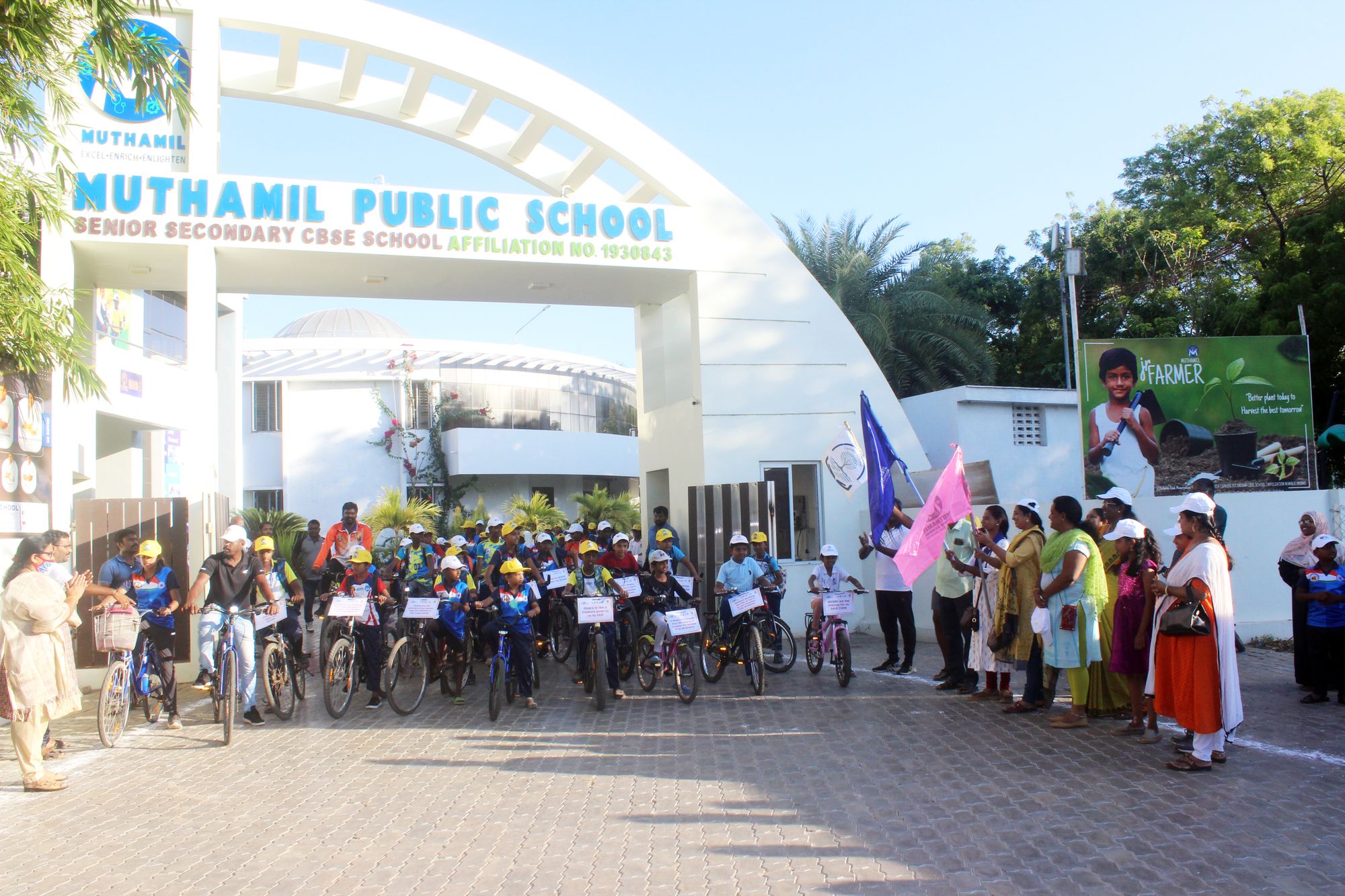 Owing to World Rivers day ,Cycle rally was jointly organised by Nellai Neervalam,Nellai Nature Club,Tirunelveli Inner Wheel club, Nellai Bicycle and Muthamil Public School.The rally was flagged off by Ms Pavithra Gopinath, the head of Inner Wheel club and Mr Selvan ,Tahsildar of Tirunelveli district. The rally witnessed the participation of more than 80 ,including the chairman of Muthamil Public School Mr Amaravel Babu, Correspondent Mrs Jeyanthi Babu ,Nellai Nature club secretary Mr Hari Pradhan, students of Muthamil Public School and Munnerpallam Govt higher secondary school .The rally started off from Muthamil Public School.At Melapalayam roundabout District collector of Tirunelveli Mr Vishnu I.A.S., enthusiastically joined the rally. The rally reached the collector office and turned back to the starting point Muthamil Public school.The rally was mainly on to emphasise on the conservation of the river Tamiraparani by creating awareness on the importance of river and the ways to prevent its pollution for a healthy ecosystem. Silambam performance by the students of Muthamil Public School was the highlight of the rally. The incredible efforts of Muthamil public school silambam master Mr. Kandasamy, Manager Mr Robin and PRO Mr. Raja Jeevanesan to make the event a successful one was high appreciable.